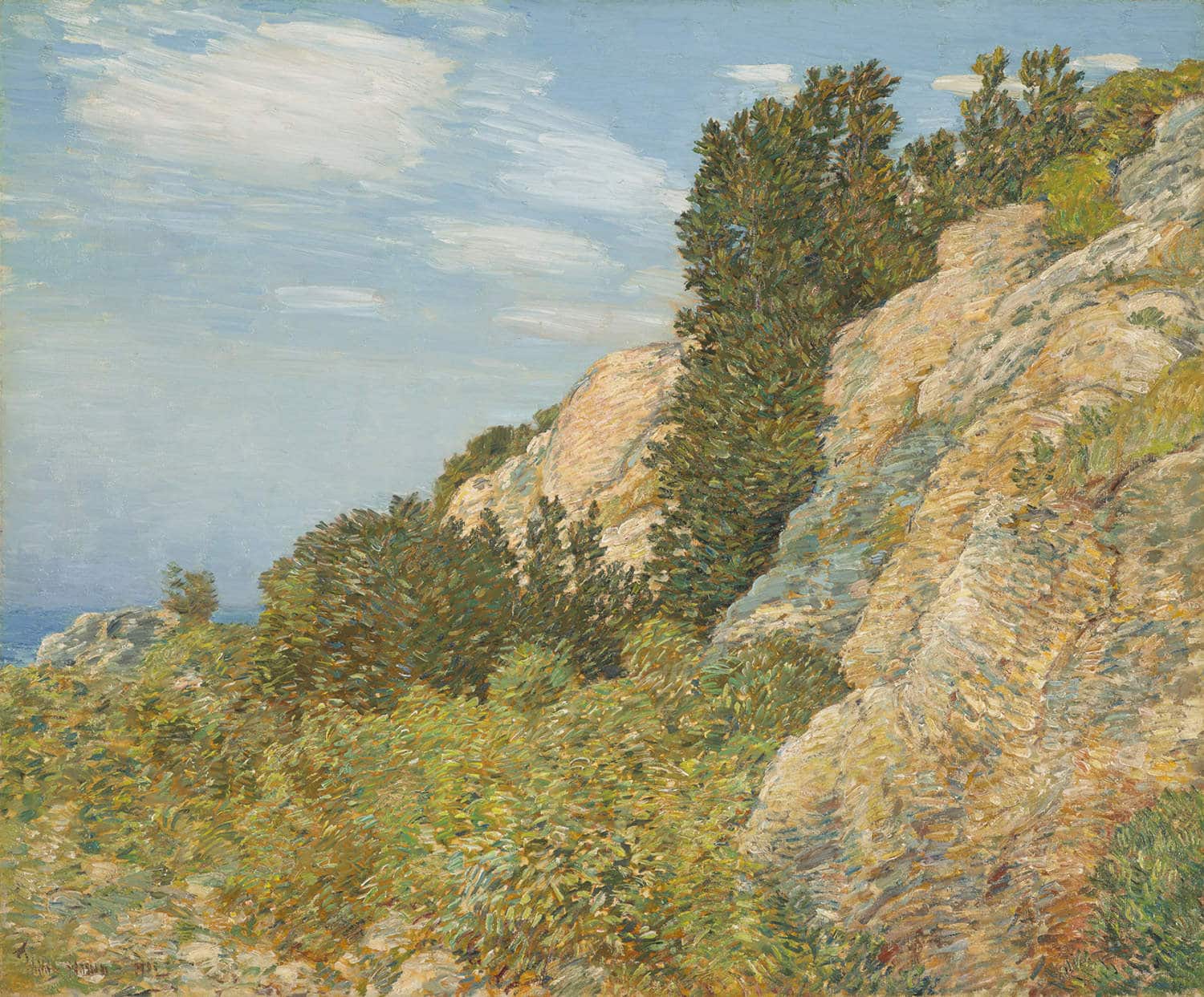 Childe Hassam The Laurel in the Ledges, Appledore 1905 Oil on canvas 25 × 30 in. (63.5 × 76.2 cm) North Carolina Museum of Art, Raleigh, Promised gift of Ann and Jim Goodnight Courtesy of North Carolina Museum of Art