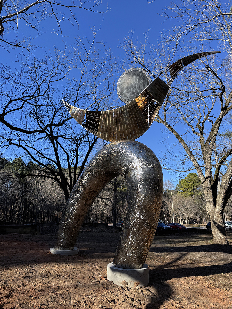 “It’s a bit of a monumental sculpture,” says Stacy Bloom Rexrode, the curator of exhibitions and collections for Raleigh Arts, who coordinated the installation in January.