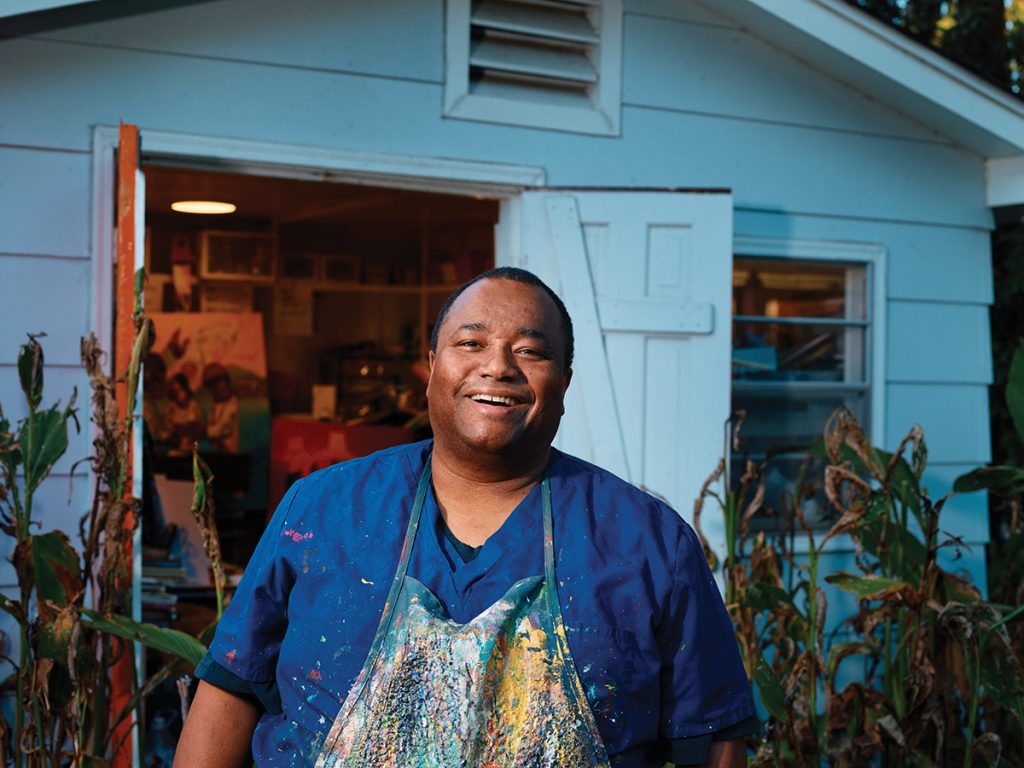 These classes and open studios have left lasting impressions on him. “I love it when young artists call me Unc or OG, or tell me, When I was in elementary school, middle school, high school, I met you and I thought I could become an artist because I saw you do it,” he says. “I love to offer that encouragement to others.”