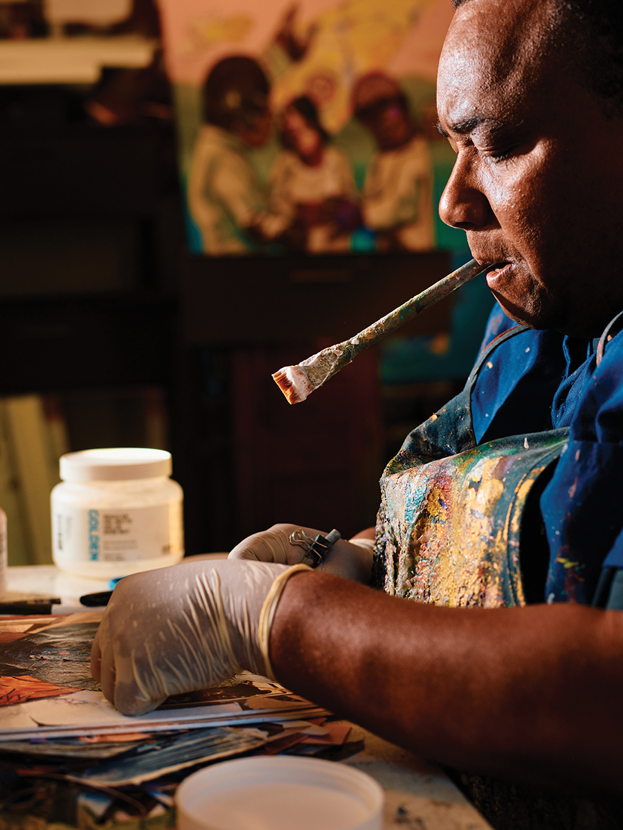 These classes and open studios have left lasting impressions on him. “I love it when young artists call me Unc or OG, or tell me, When I was in elementary school, middle school, high school, I met you and I thought I could become an artist because I saw you do it,” he says. “I love to offer that encouragement to others.”