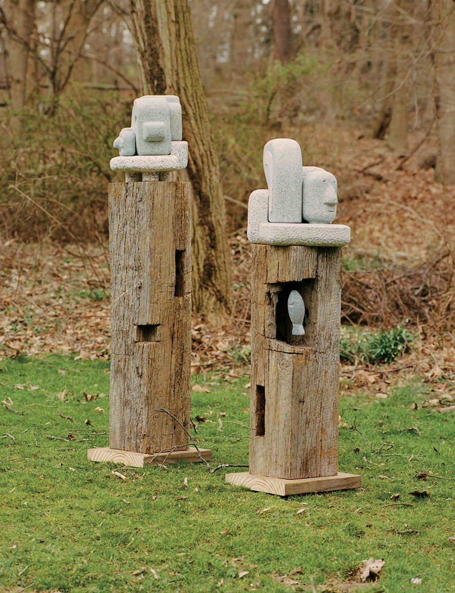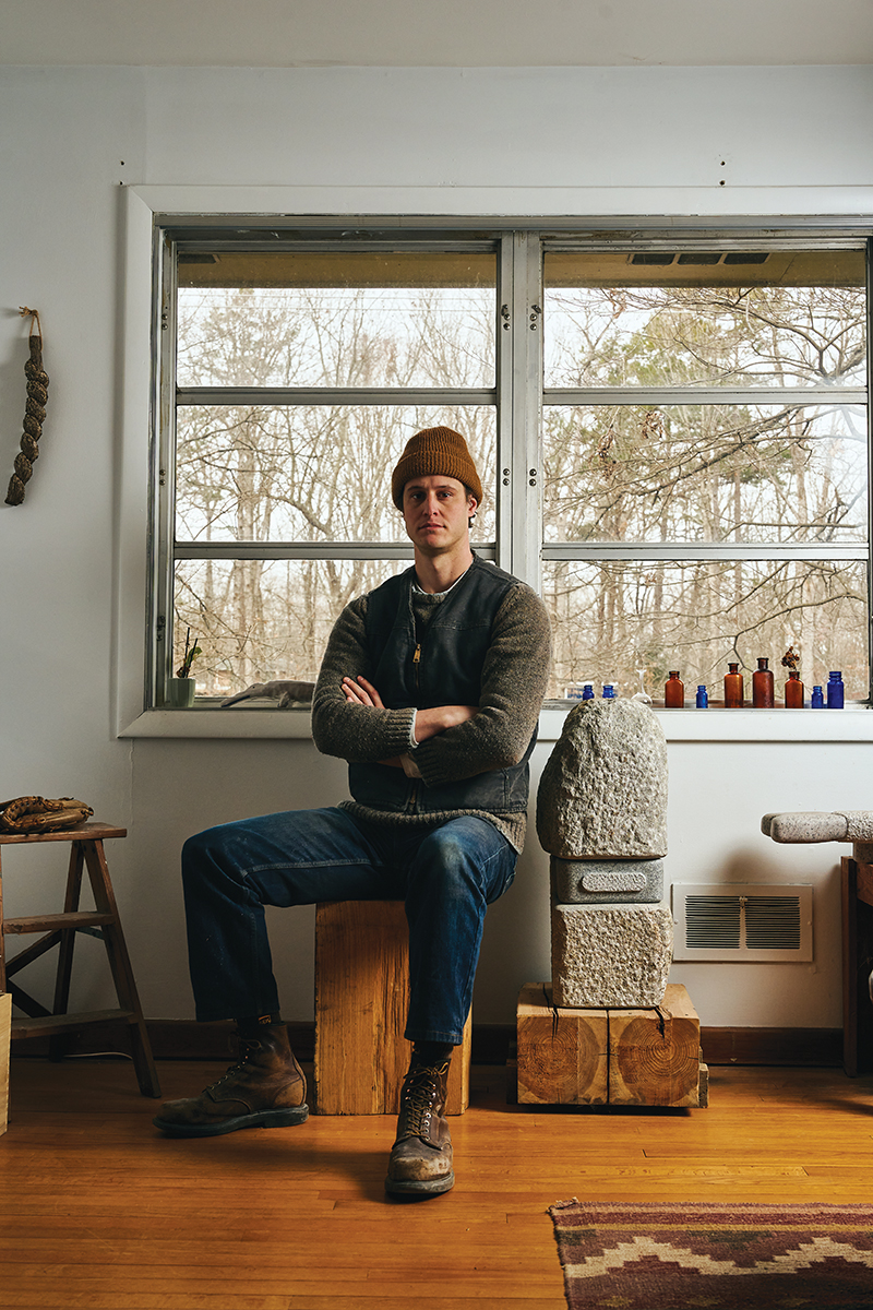When he was 23, Byrd moved to New York, then later Northern California, working a slew of jobs ranging from set design for magazine shoots to apprenticeships. These refined his diverse skill set, but ultimately the lure of stone beckoned Byrd home. “I have worked in woodshops and I’ve worked in metal shops, but I just didn’t have an emotional connection to those materials. I’m pretty at home with stone,” he says. Byrd returned to the Triangle and stonemasonry in 2018, reconnecting with Burleson and with private clients. During his spare time, he began experimenting with sculpting, using the same dry-laid stone wall techniques to create small, abstract sculptures from salvaged stone.