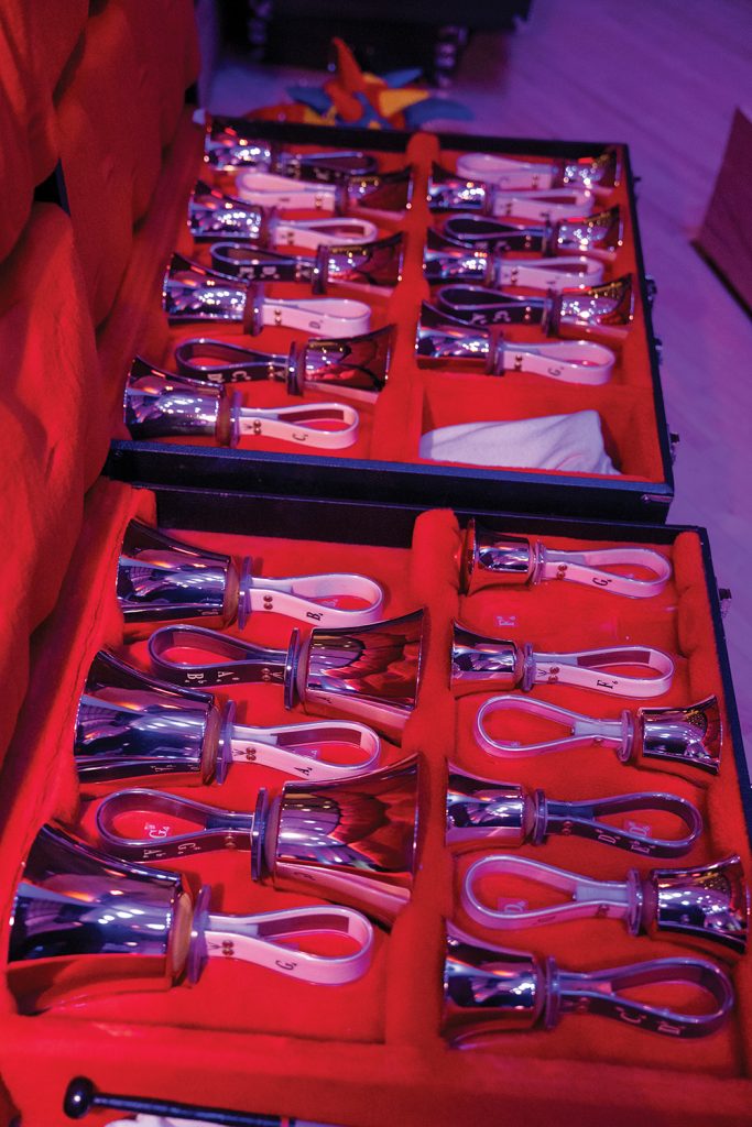 Being part of a choir like the Ringers is no easy feat. Each member of the Raleigh group must re-audition for their spot each year in a rigorous try-out, no matter how long they’ve been performing with the team. If they’re chosen, they must commit to the choir’s 3.5-hour weekly rehearsals and busy concert schedules, since even one missing player can disrupt the melody. “Every spot is critical,” says Chiatello, adding that she and other members often practice on their own for several hours a week.