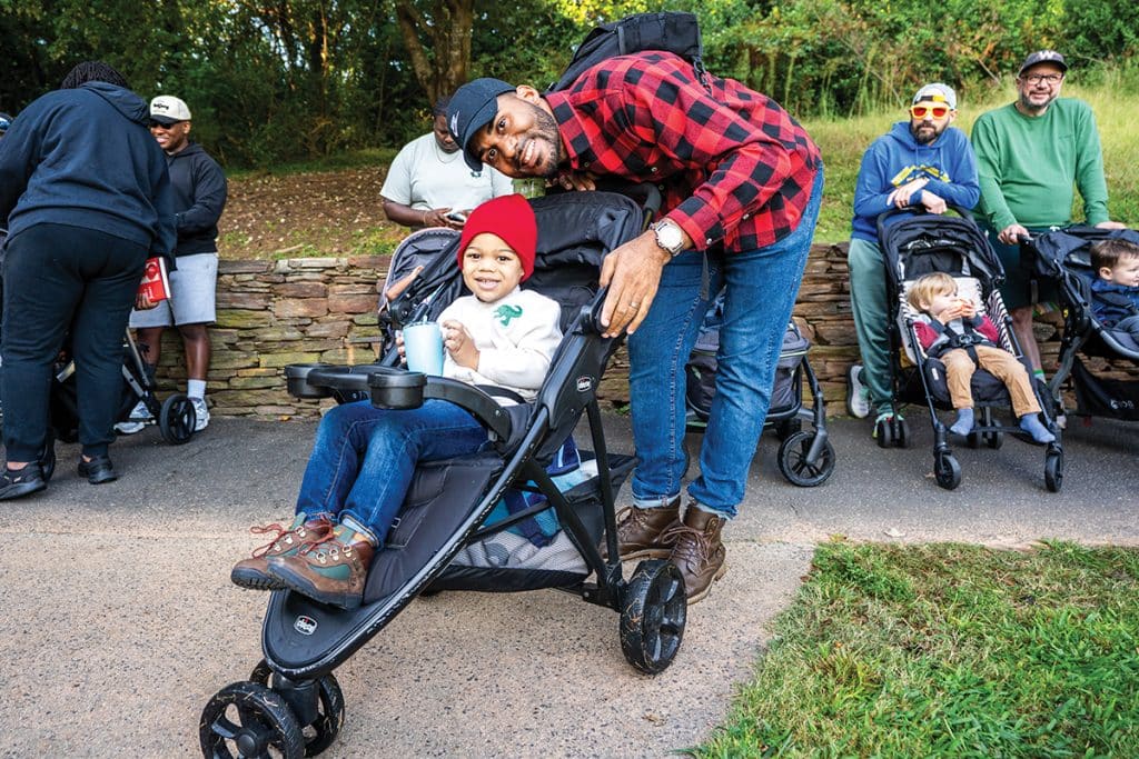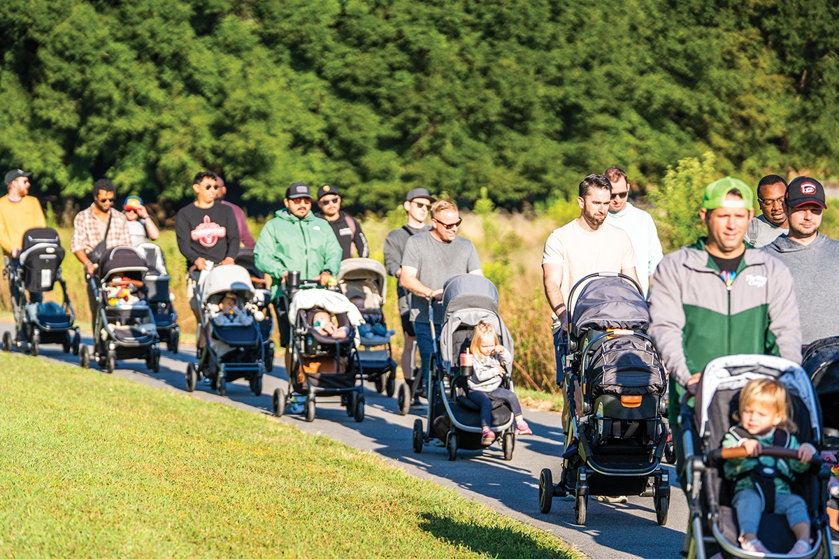 Seventy dads, just as many strollers, a crew of chatty toddlers and a mountain of Tepuy donuts: it’s pretty hard to miss, even in a big park on a busy Saturday morning. But visibility is part of the point. The emergence of Raleigh Stroller Society reflects not just on Folston and its participants, but also on our city. “It speaks volumes about the family-friendly community here,” says Brian Lauscher, who attended the September meet-up on his first day in Raleigh, after moving here with his husband and daughter. “I’ve chatted with some of my dad friends in other cities and they’d love to have a dad meetup group like the one in Raleigh.”