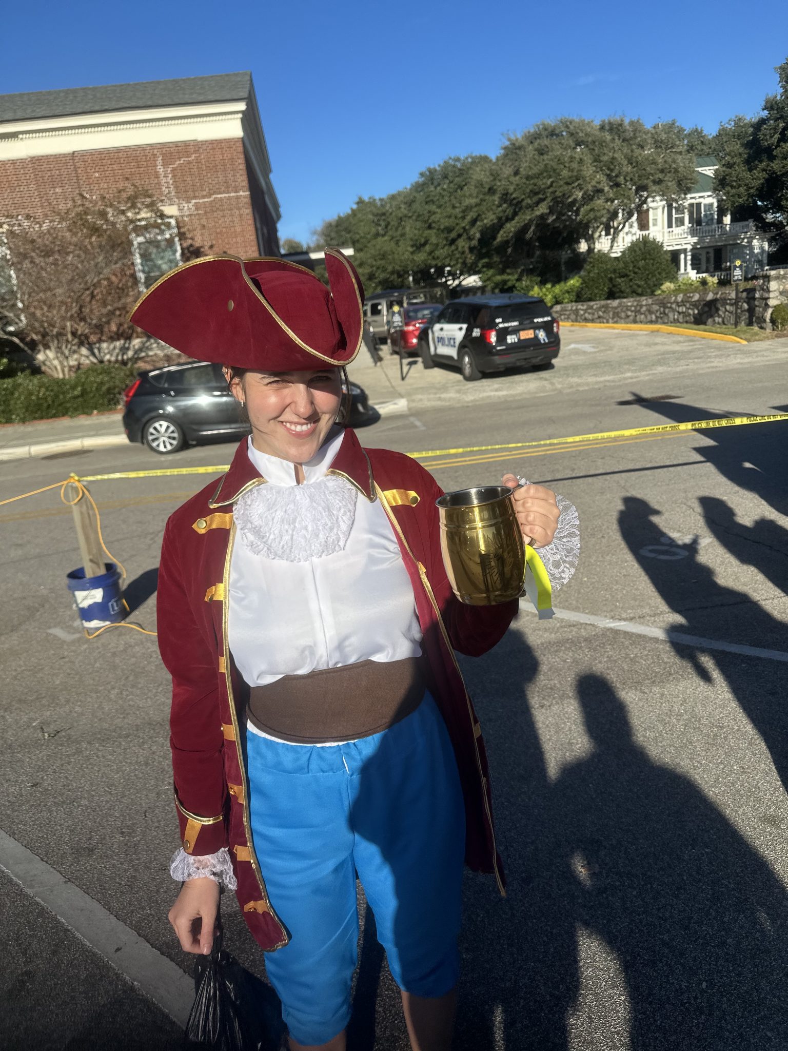 Saturday’s festivities began at 11 a.m., which was fine by me — like these pirates, I am not an early riser. In keeping with my daughter’s request, I had ordered full-body costumes on Amazon. Unfortunately, I didn’t realize I’d actually ordered two British Red Coat costumes until I unpacked them the day of the Invasion. Not quite the right costumes — wrong enemies and off by a few decades — but at least they showed effort. We zipped ourselves into our polyester pantsuits, donned our tricornered hats and set off.
