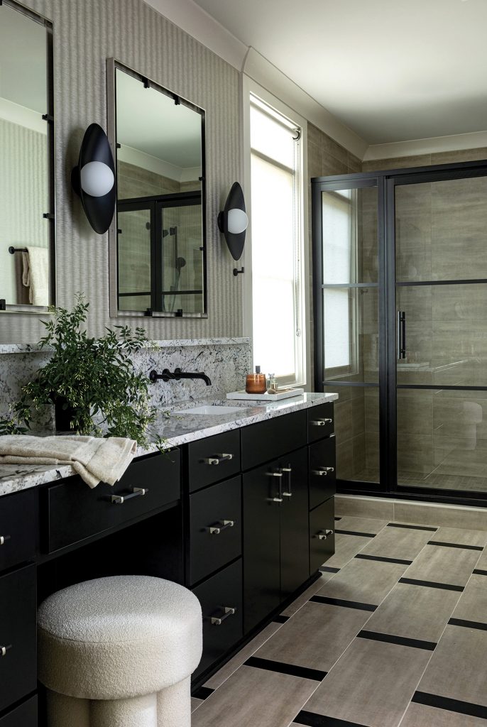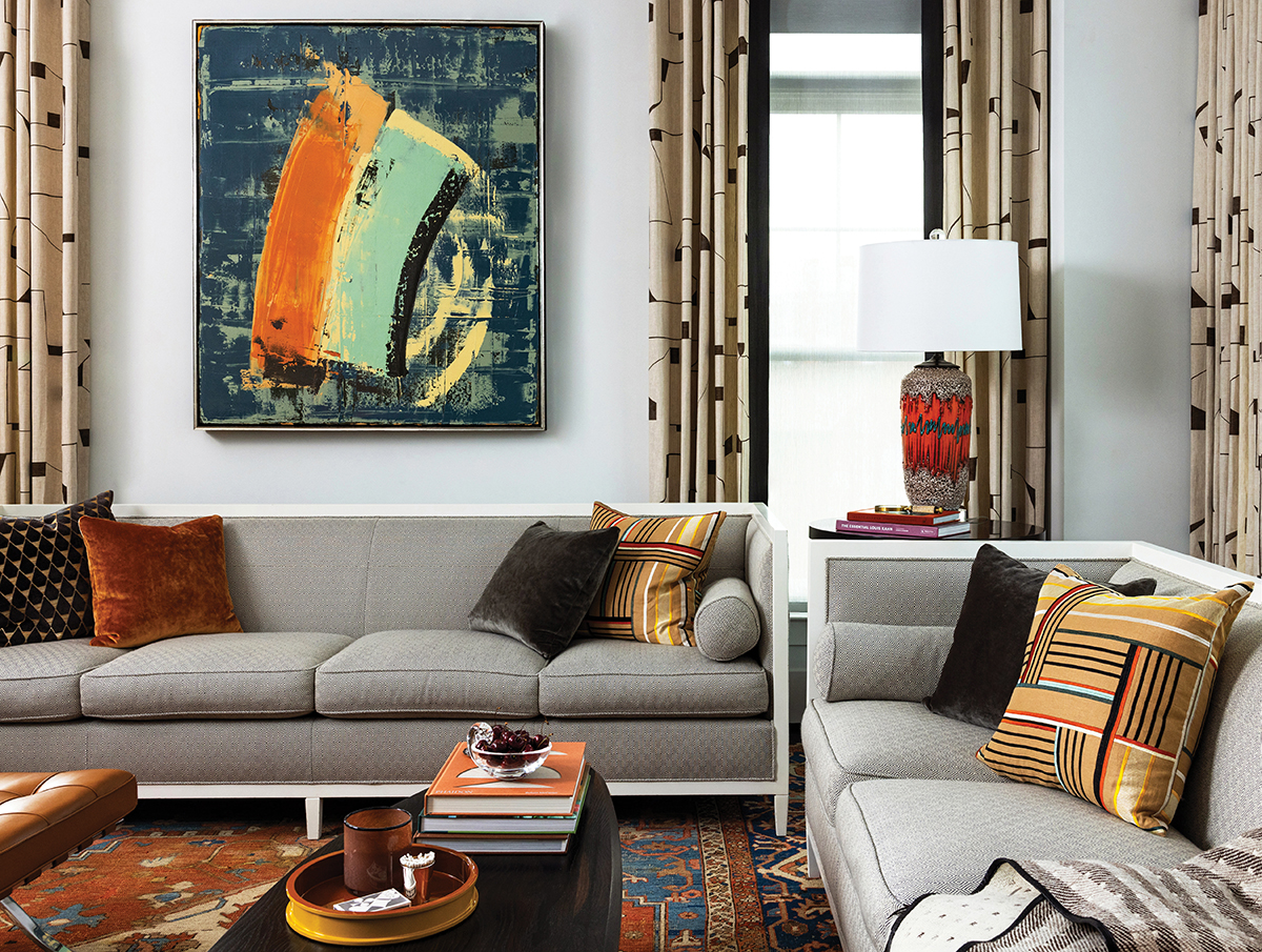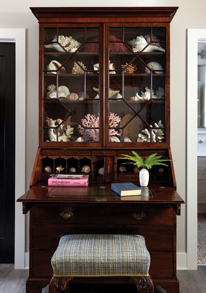 Throughout, the design connects the homeowners to their past, with an eye toward ushering in their next chapter, says Pugh: “They have been around the world and have a funky style, and this home reflects that great combo of a love of antiques and an appreciation for contemporary design.”