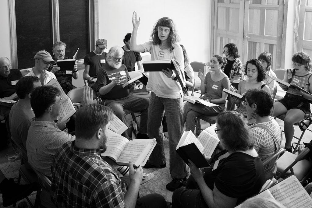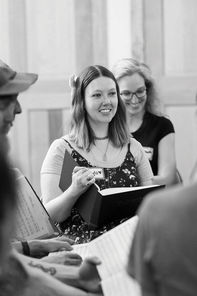 And while the songbook titles might suggest a sound that’s delicate or even sentimental, the music is anything but. Loud, direct and energetic, shape note singing was (and still is) meant to be in full voice, with singers arranged in a hollow square, one part on each side, each voice carrying its own weight. “A good voice in shape note singing is one that can hit the notes and sing loud,” says Lechtman. “That perspective is so freeing, so bucket-filling. Singing is a thing we’re doing together, like an organism that I get to become part of.”