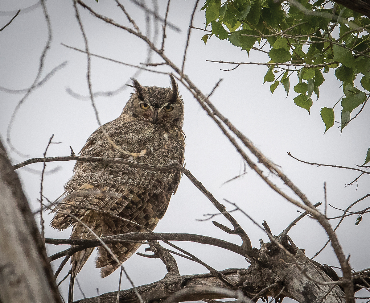I have even found one nest at the top of a broken tree trunk where a tangle of poison ivy vines had created a large platform. Great horned owls are among our earliest nesters, and I have seen them sitting on a nest during several of our Christmas Bird Counts.