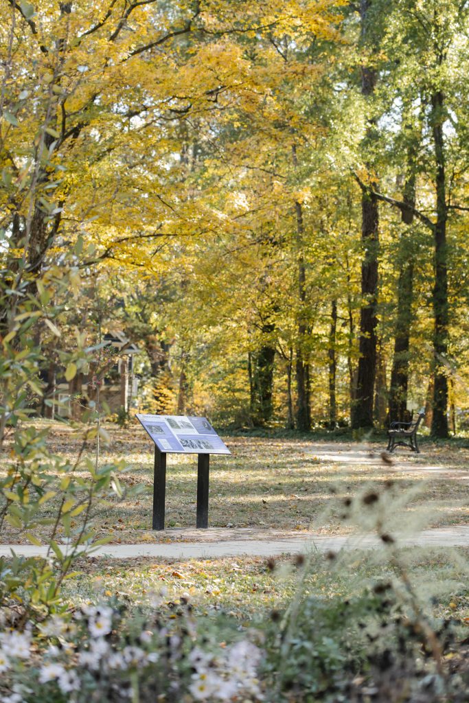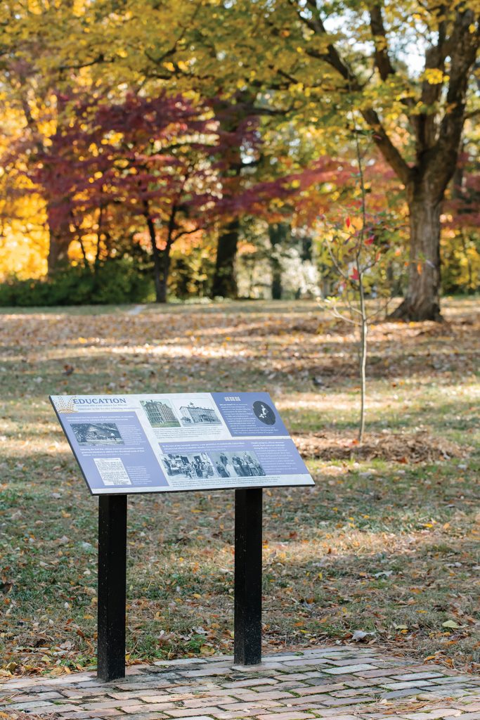 The planning process sparked debate over how best to tell Latta’s story, but over time, two priorities emerged: preserve the history of the land and preserve its serenity. On the 2-acre site, visitors today can trace the Latta House footprint in granite. Six interpretive signs, developed with input from Neuwirth and local historians, highlight artifacts like family photos, census records and findings from archaeological digs, including slate and writing tools, cutlery and coins. Plans for a second phase include an interpretive pavilion to explore the university’s story more deeply.