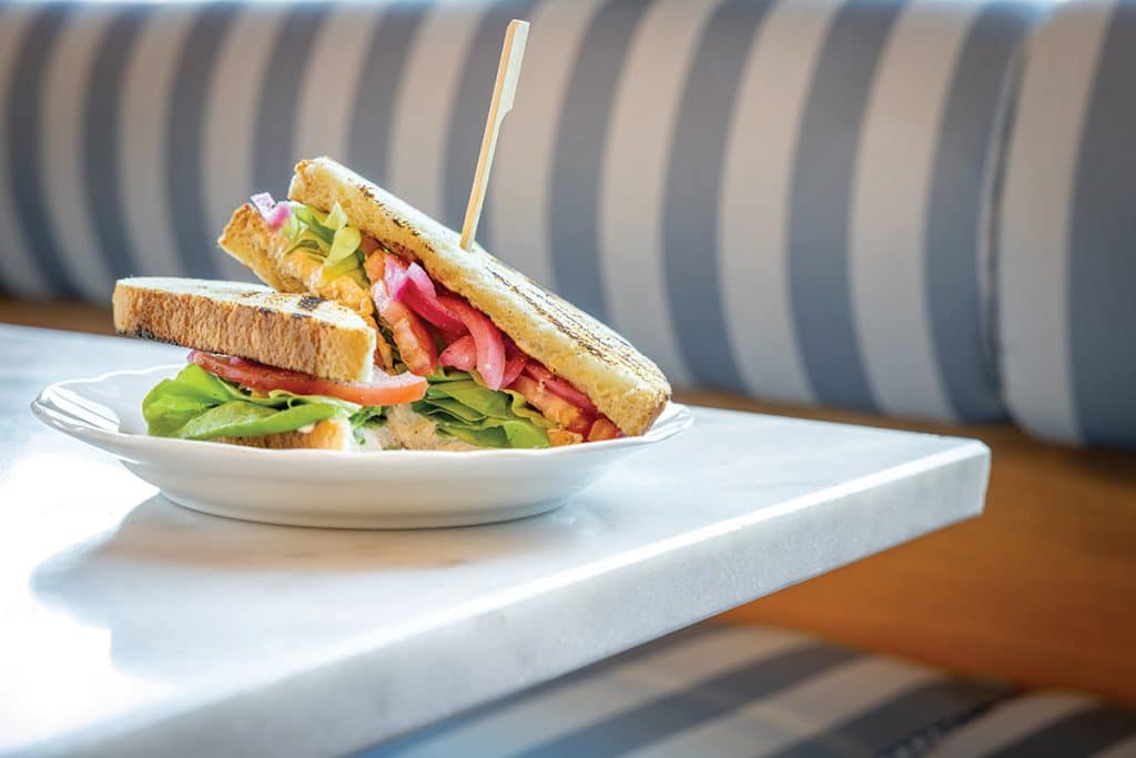 In the kitchen, chef Cody Ross brings a fresh perspective to Southern cooking. Originally from Alabama, Ross most recently worked at Bread & Friends in Portland, Maine, before he and his wife felt the pull to return to the South. Partnering with Liz Grandchamp of Raleigh-based restaurant consulting group Grandchamp Hospitality, Ross developed a menu rooted in Southern tradition but reimagined with a lighter touch. “This was a challenge, because ‘light’ isn’t always what you think of when you think of Southern food,” he says. “We wanted to serve food that people were comfortable with, that they could relate to, but with a healthful spin.”