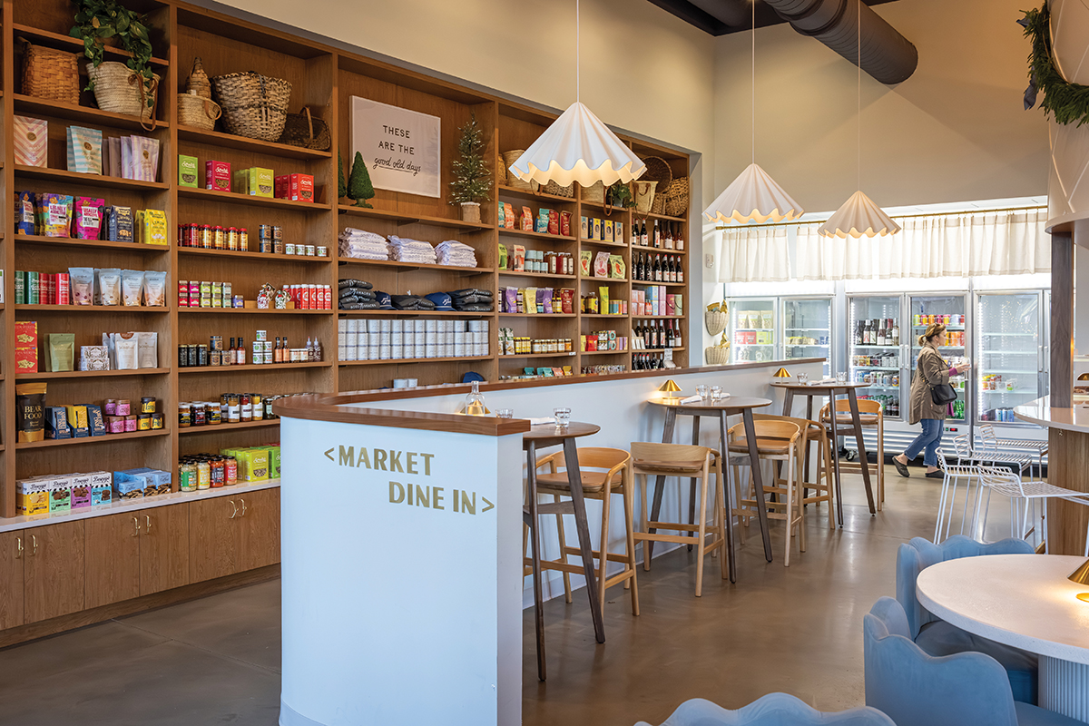 In addition to the all-day menu, the team has curated a marketplace of locally sourced items. “We wanted to showcase products we already know and love,” says Borden. On the polished shelves, find products like Raleigh-made Mama’s Salsa, Piedmont Pennies from Matthews, NC, and Poppy popcorn, which is based in Asheville. Good Graces also offers its own party mix blend and branded merchandise like hats and sweatshirts. The team will even curate a gift box with selected products wrapped and sealed with their signature bow.