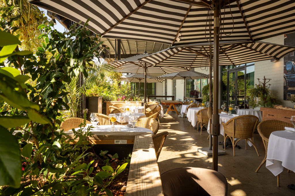 From chef Giorgios Bakatsias, an herb-forward European menu, served on a flower-filled patio.