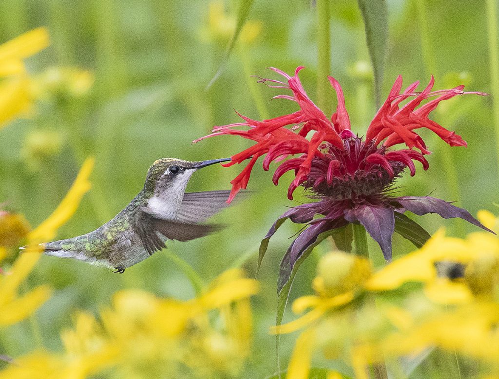 Bright colors, unique shapes and other adaptations make Beebalm, Wild Columbine and other flora attractive to hummingbirds