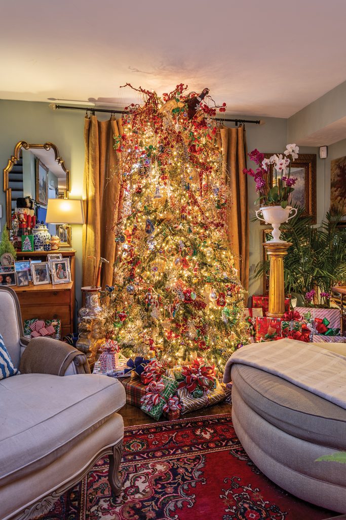 Tangible gifts play a role, too: each present under his tree sports a layered or rosette bow made from thick, festive ribbon. “My mother taught me how to do bows when I was eight,” says Overby. “I truly believe the way the package is presented is part of the gift.”