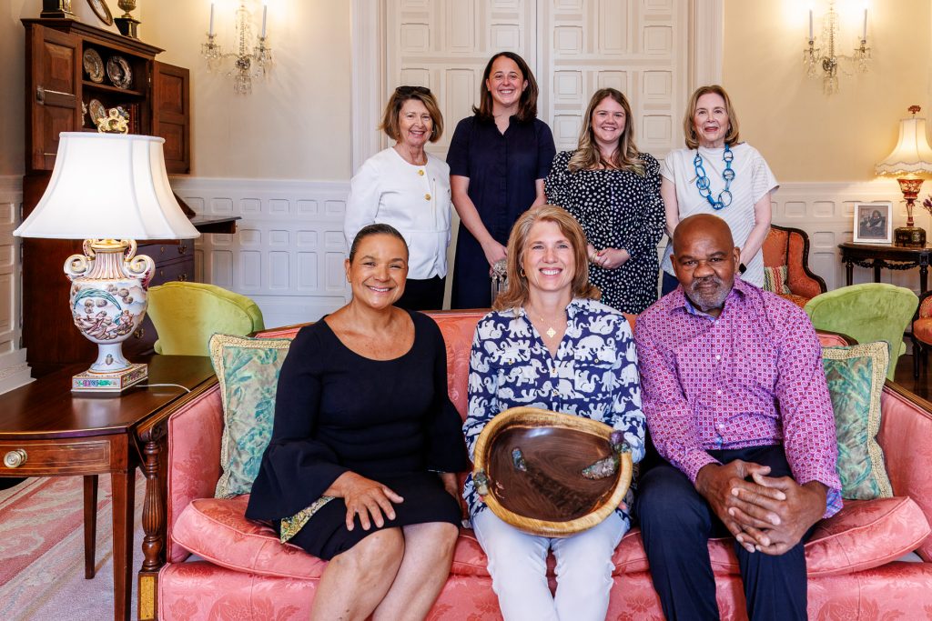 On Aug. 25, Mariella and Nathan Favors presented First Lady Anna Stein with a bowl that they made at their studio in Bakersville. The two are outstanding artists: he, a wood turner, and she, a gem expert. The bowl they presented was made from North Carolina wood with stones indigenous to our state.