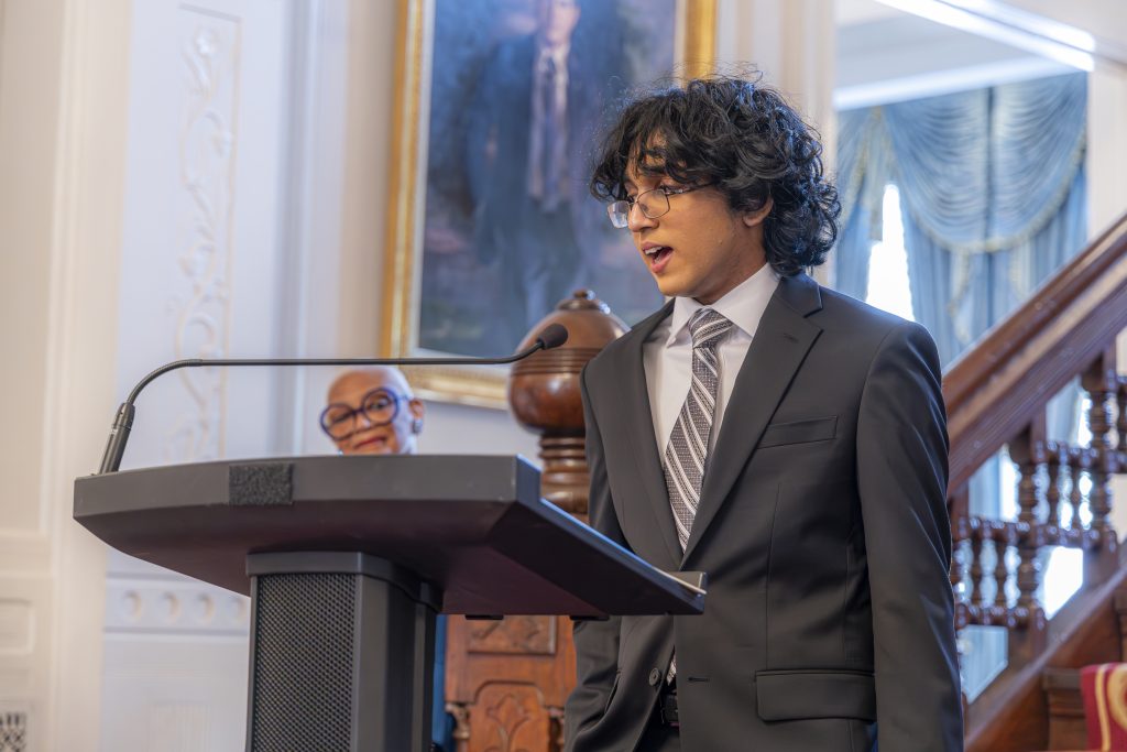 North Carolina Poet Laureate Jaki Shelton Green hosted a reception with First Lady of North Carolina Anna Stein in attendance at the Executive Mansion on May 13 to celebrate the 2025-26 Orange County Schools and Chapel Hill-Carrboro City Schools high school poet laureates. They also honored the first North Carolina Youth Poet Laureate, Rishi Janakiraman of Raleigh. The runners-up for the North Carolina Youth Poet Laureate were Vanessa Hunter and Kenna Zhang of Cary.