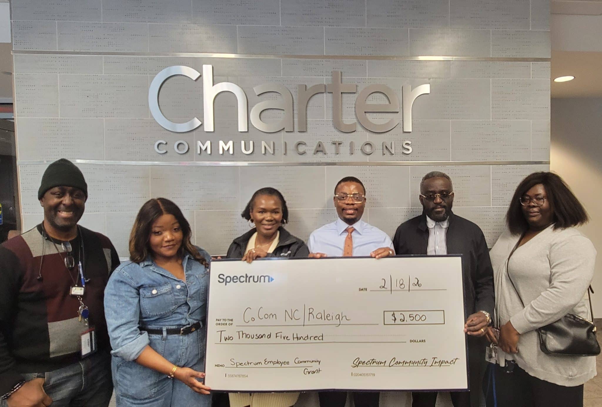 On Feb. 18, Spectrum donated $5,000 to two nonprofits in Raleigh through the company’s employee-driven grants program that recognizes the value of community service, Spectrum Employee Community Grants. The recipients are Congolese Community of North Carolina/Raleigh and Rhoda Generation.
