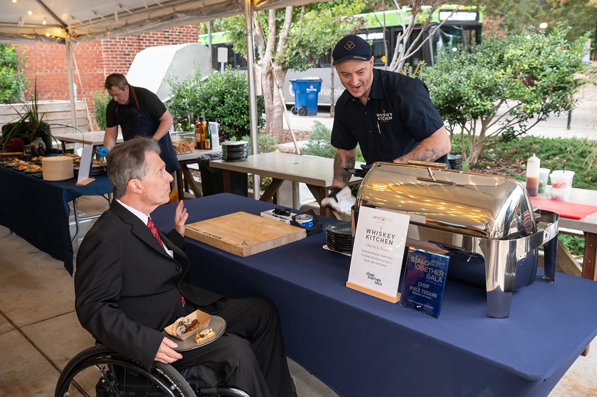 The Stand Together Gala at Whiskey Kitchen brought together chefs Coleen Speaks, Sunny Gerhart, Preeti Waas, Kyle Teears and Evan Cordes for an unforgettable evening celebrating food, community and compassion. The event raised over $100,000 to support NextStep Raleigh, a state-of-the-art paralysis recovery center helping individuals rebuild strength, independence and confidence through research-based therapy. Guests enjoyed inspired small plates and signature cocktails using Sutler’s Spirit Gin from
