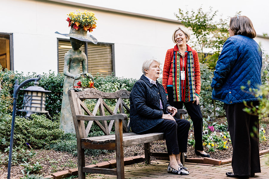 The beautiful courtyard garden created, financed, and tended by the Guild was named in honor of Maude Grimes, a longtime volunteer and an avid gardener. When current Rex was built, she insisted the magnolia that shaded the lot on St. Mary’s street be moved to the Lake Boone location. But the price tag was prohibitive. So the Guild raised the money, and the tree made the journey. The Maude Grimes Garden is lovely in the fall, but absolutely stunning spring through summer as tulips, azaleas and hydrangeas take their showy turns. “It’s a place of comfort and serenity for all our patients,” says Hardy.